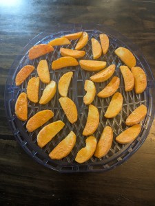 I needed to make some more dehydrated fruit snacks today so along with the plain and chile lime apples I decided to try something else too: