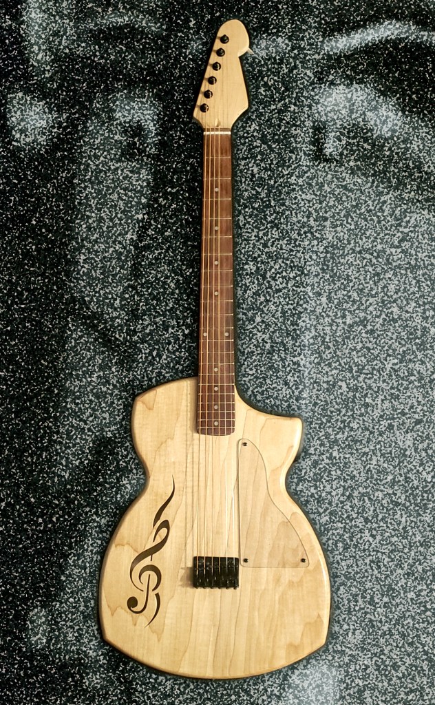 My first guitar design (RG1) turned out a little smaller, lighter, and not as unique as I was hoping for, but it was playable. As I was working on it, I got the chance to build a couple other guitars as display pieces, so I got a couple other chances to “practice” building guitars that would probably never be played. And with the first couple out of the way, I refined my design, applied the lessons I’d learned from them, and came out with my next design.