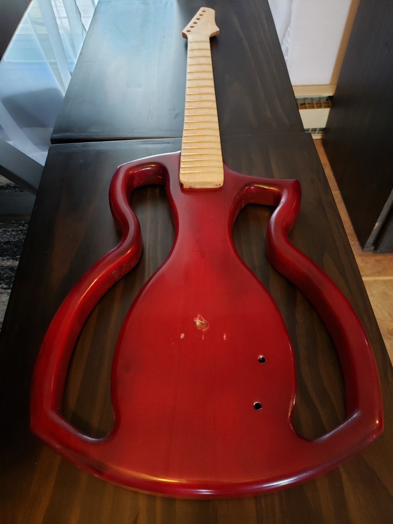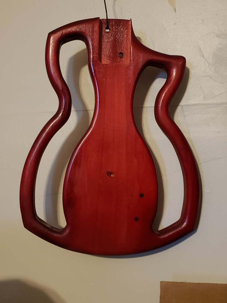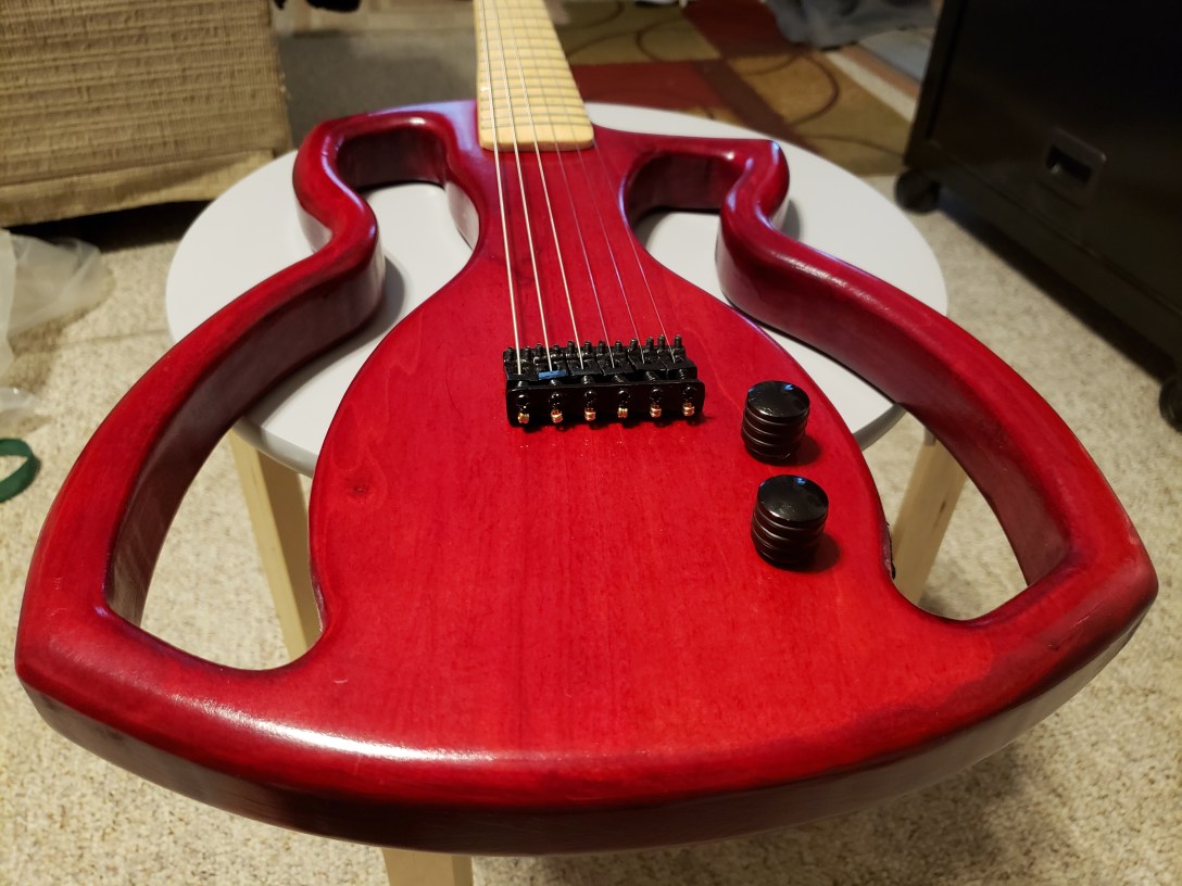 All in all, I’m very happy with this guitar. It’s a solid body with electric strings so it has a completely different sound then my semi-hollow build which is strung with acoustic strings. The semi-hollow has a fuller sound, more in line with the stuff I usually play but this one has a more driven, piercing sound that will go really well with the new rock/metal songs I’m working on learning.