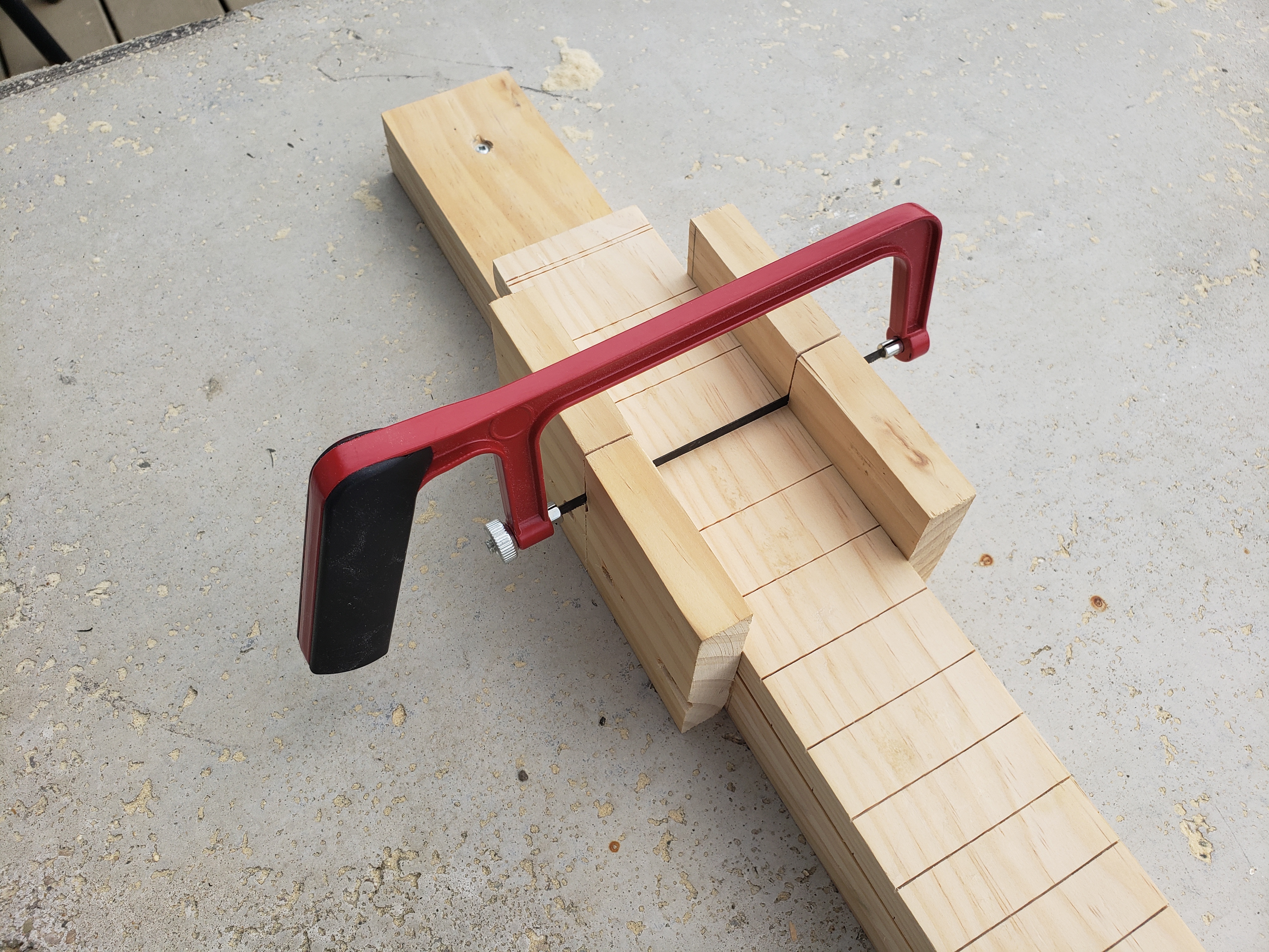 A lot of people prefer to use expensive fret saws but I don’t have that kind of money to through around on something I’ll only use a couple times a year, so I went with a cheap plastic saw that cost me $8. It seems to cut perfectly straight and the replacement blades are extremely cheap.
